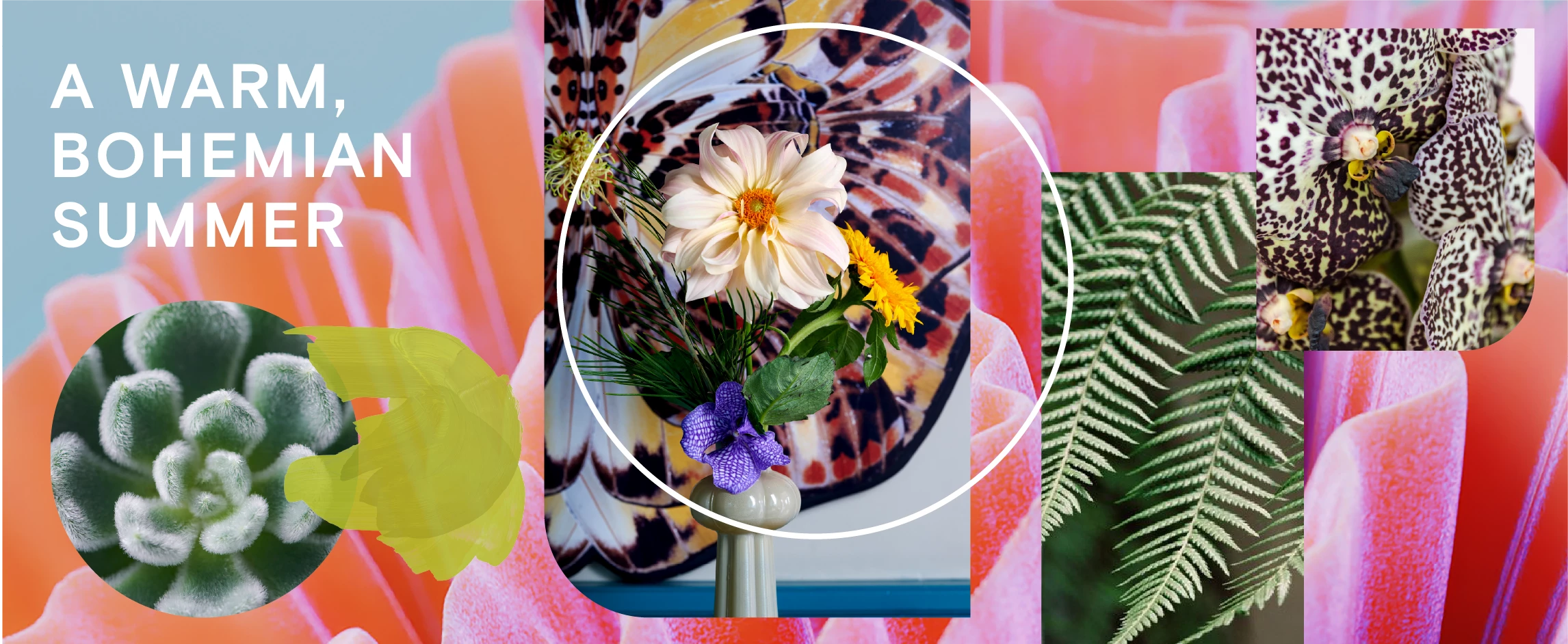 Färgerna i sommar glöder av intensivitet, passion, uppriktig glädje och lekfullhet. Färgstarka finurliga blomsterkreationer i varma toner sticker ut hakan och har inga planer alls på att spela andrafiolen. Växt- och blomvalet är brett, yvigt och tillåtande, så länge du väljer stort och modigt och går din egen väg, är du rätt på bollen.